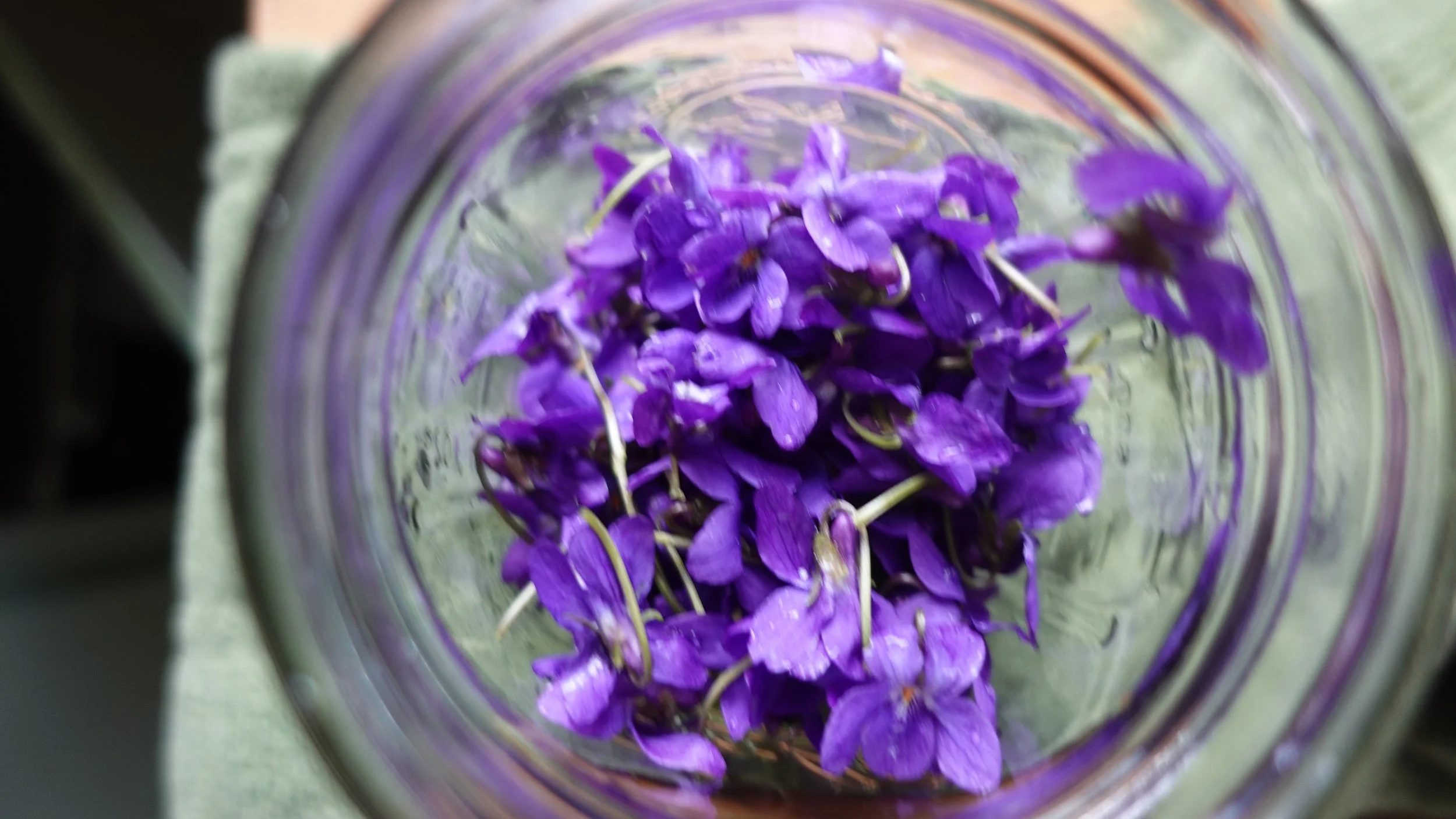 Start by harvesting about a cup of violet petals. Harvest them mid-morning to early afternoon once the dew has dried off the plants.